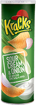 - Картофельные чипсы с насыщенным вкусом сметаны, посыпанные зеленым луком